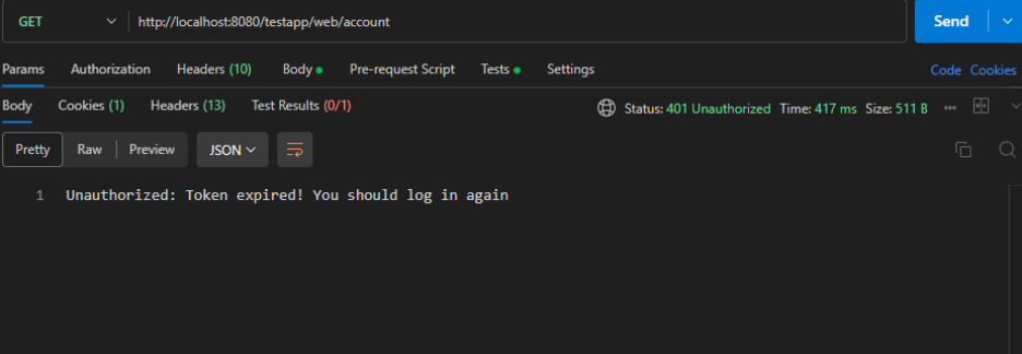 Since the JWT is now expired or missing, the next request to /account is rejected.