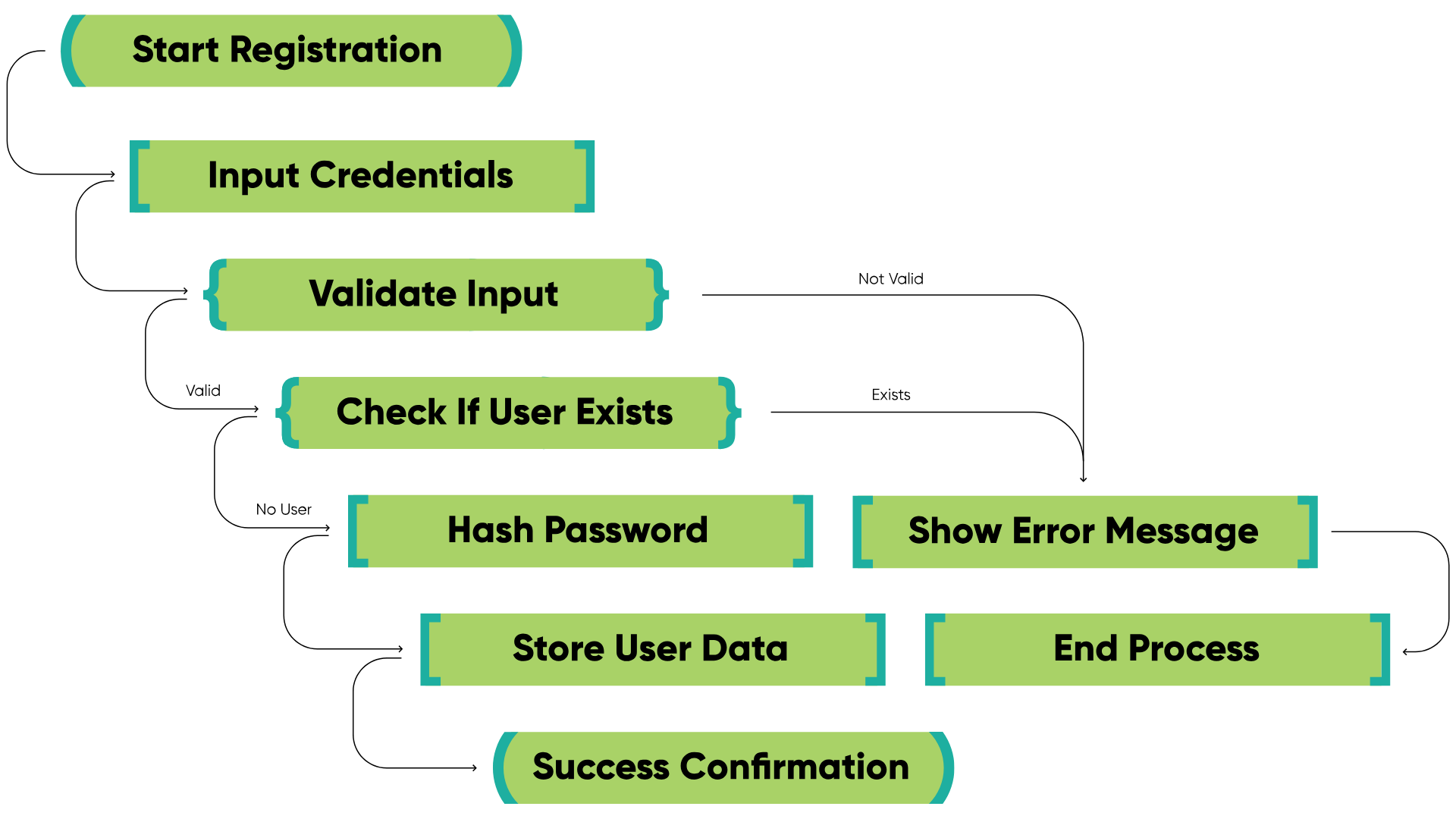 User Password → Get Salt From environment variables → SHA-256 Hash → Store (Hash)